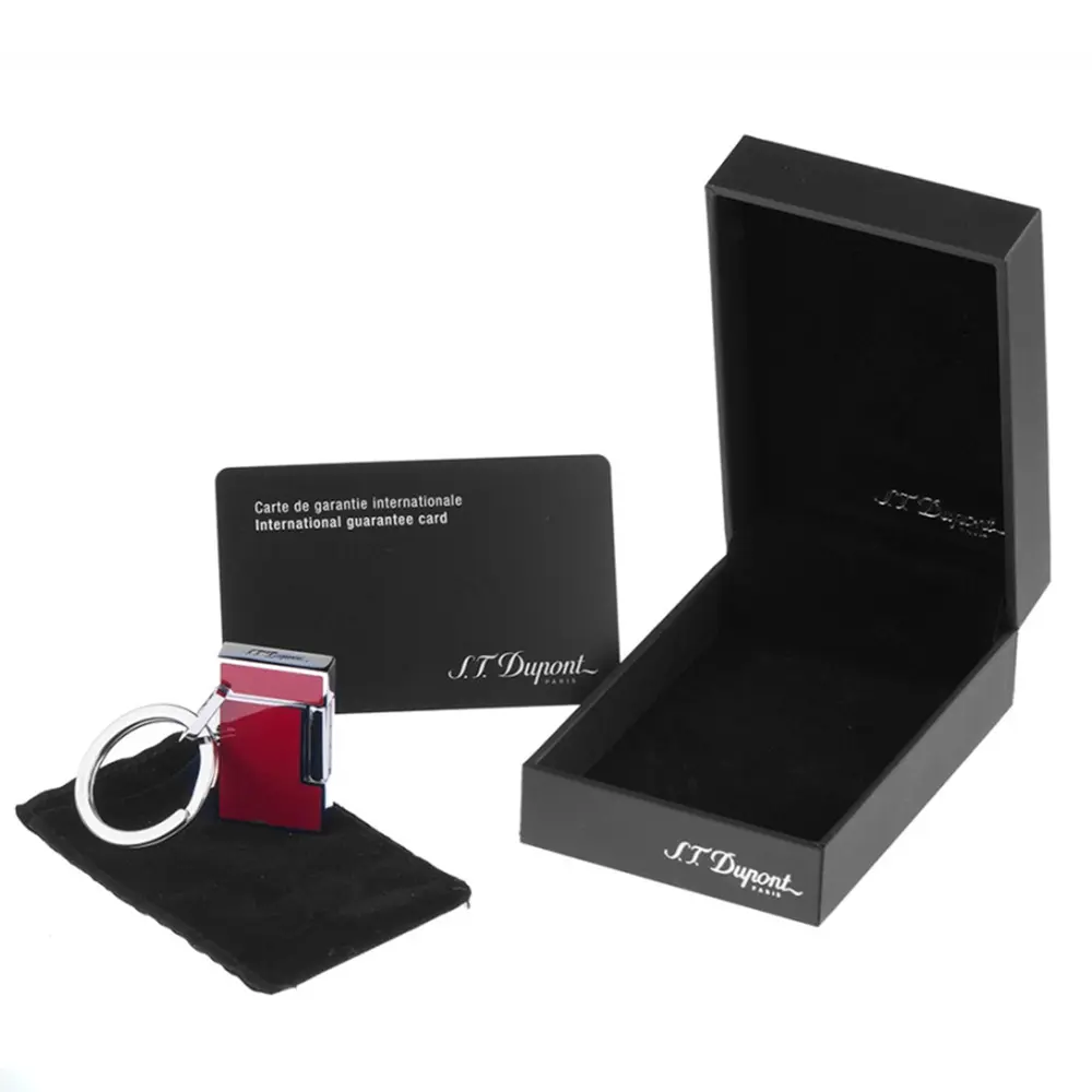 Privezak francuskog brenda S.T.Dupont sadrži luksuzni upaljač jedinstvenog dizajna, manjih dimenzija u crvenoj boji.