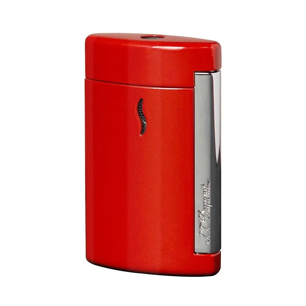 Upaljač prestižnog francuskog brenda S.T. Dupont iz kolekcije Minijet izrađen od hroma sa dodatkom premaza najkvalitetnijeg kineskog laka u crvenoj boji.Svojim dizajnom zaobljenih linija predstavlja savršen spoj za one koji su ljubitelji minimalističkog dizajna.Na samom upaljaču je vidiljivo istaknut logotip brenda koji služi kao potvrda o autentičnosti i kvalitetu izrade.
