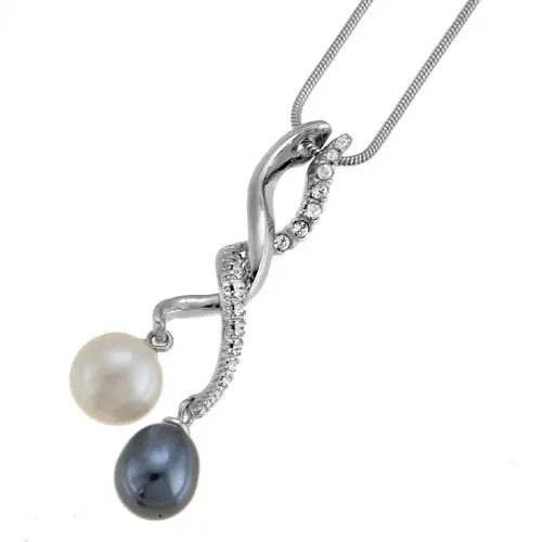 Elegantna ogrlica od čelika sa swarovski kristalima i swarovski perlama bele i teget boje. Na prvi pogled videćete sjajne elemente priveska za kompoziciju. Kristali swarovski osiguravaju željenu elegantnu notu,dok plavi i beli biseri deluju kao savršeni element koji privlači oči. Obloga od rodijuma obezbeđuje dugotrajan sjaj.