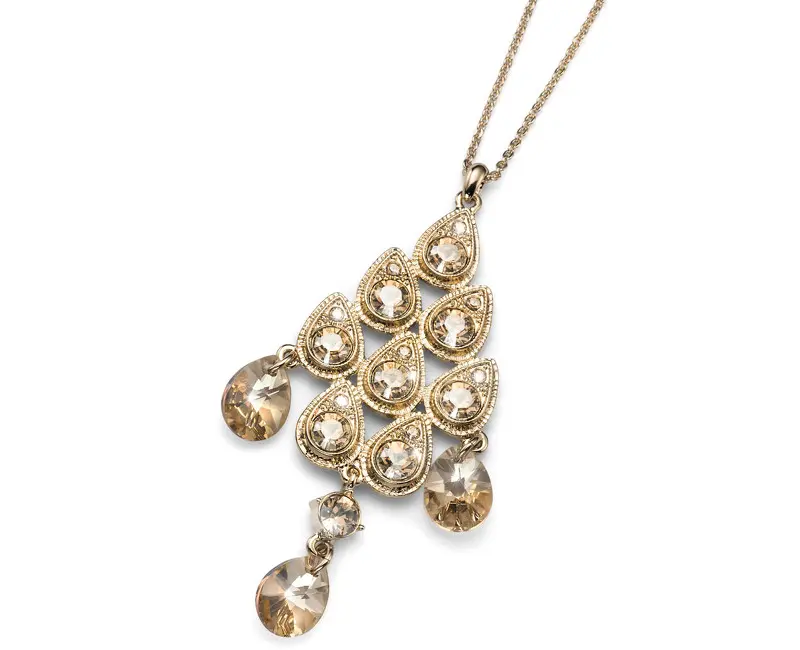 Elegantna ogrlica od rodiniranog čelika u žutoj boji brenda Oliver Weber. Upečatljiv i zanimljiv detalj čini privezak neobičnog oblika izrađen od swarovski kristala. Ovaj komad nakita učiniće da zablistate u svakoj prilici.
