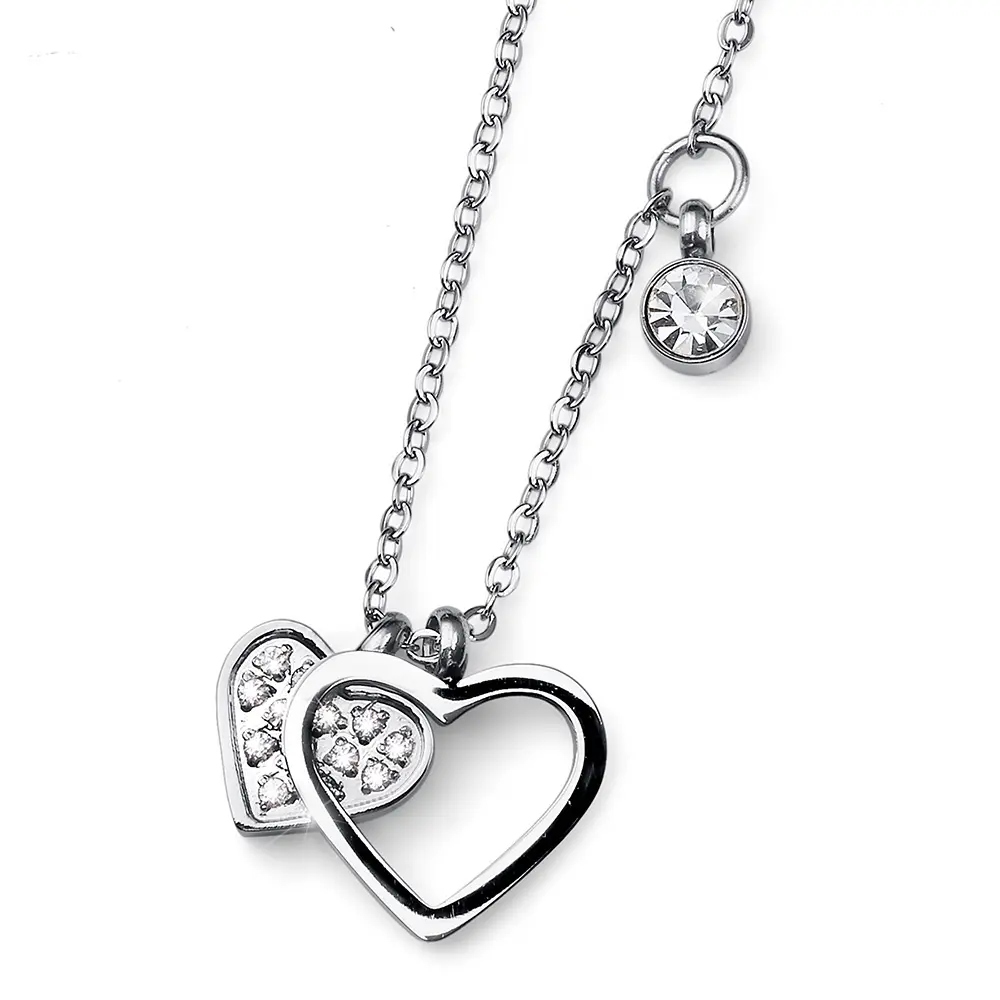 Ogrlica modernog dizajna brenda Oliver Weber. Karakterišu je privesci u obliku dva prepletena srca .Jedno od srca je upotpunjeno Swarovski kristalima koji ovoj ogrlici daju prefinjen izgled. Zanimljiv komad nakita koji možete nositi svaki dan.