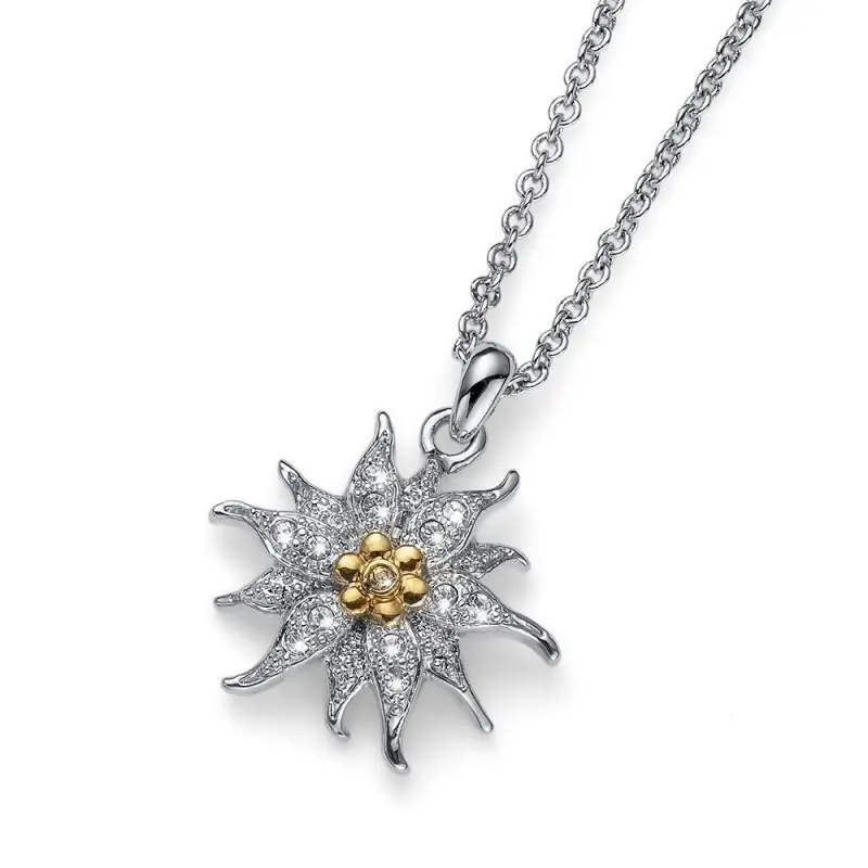 Elegantna ogrlica ukrašena Swarovski kristalima brenda Oliver Weber. Upečatljiv dizajn čini cvet koji nas povezuje sa lepotom i nežnošću a kristali magičnu kombinaciju svetla i boja. Pogodne je za nošnje u svečanim i posebnim prilikama.