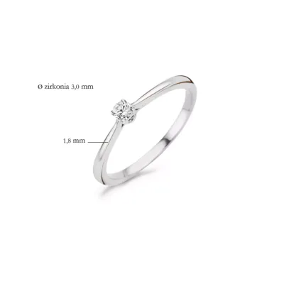Blush ženski prsten od 14ct belog zlata sa cirkonom u šatonu promera 3mm. Za glamurozniji stajling možete ovaj elegantni prsten nanizati ili ukombinovati sa još nekoliko komada nakita u istom tonu.