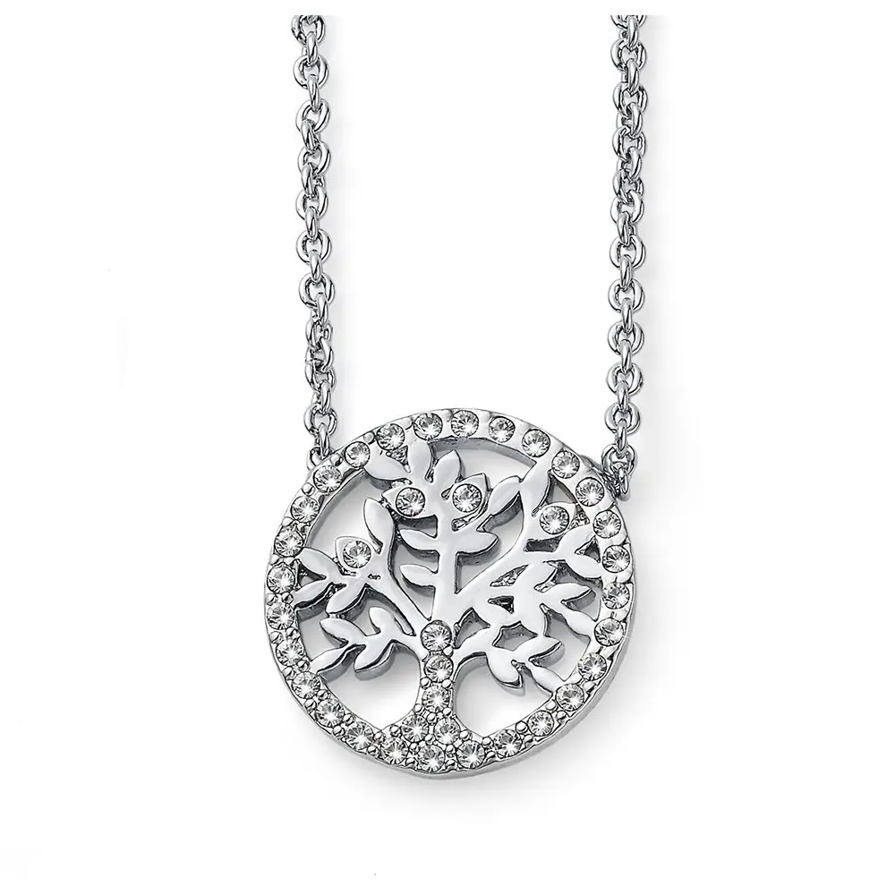Ženska ogrlica brenda Oliver Weber prepoznatljiva je zahvaljujući svom nesvakidašnjem dizajnu.Krasi je privezak u obliku drveta.Srebrne je boje dok je privezak prožet Swarovski kristalima.