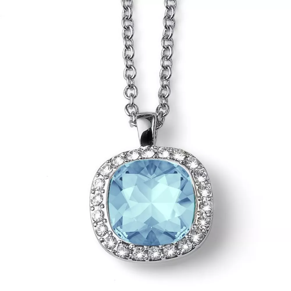 Unesite dozu elegancije i ženstvenosti u svoj stil sa Oliver Weber ženskom ogrlicom sa priveskom ispunjenim velikim svetlo – plavim Swarovski kristalom i sitnijima oko njega koji reflektuju dugine boje.