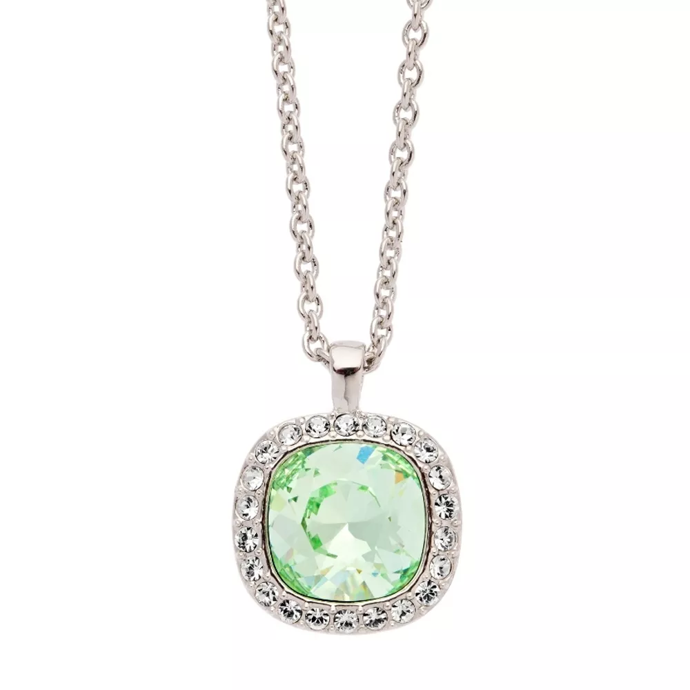Unesite dozu elegancije i ženstvenosti u svoj stil sa Oliver Weber ženskom ogrlicom sa priveskom ispunjenim velikim svetlo – zelenim Swarovski kristalom i sitnijima oko njega koji reflektuju dugine boje.