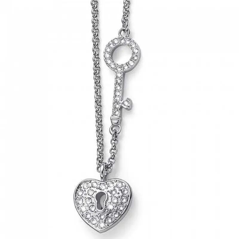 Ženska ogrlica brenda Oliver Weber sa privescima u obliku srca i ključa koji su ukrašeni Swarovski kristalima.