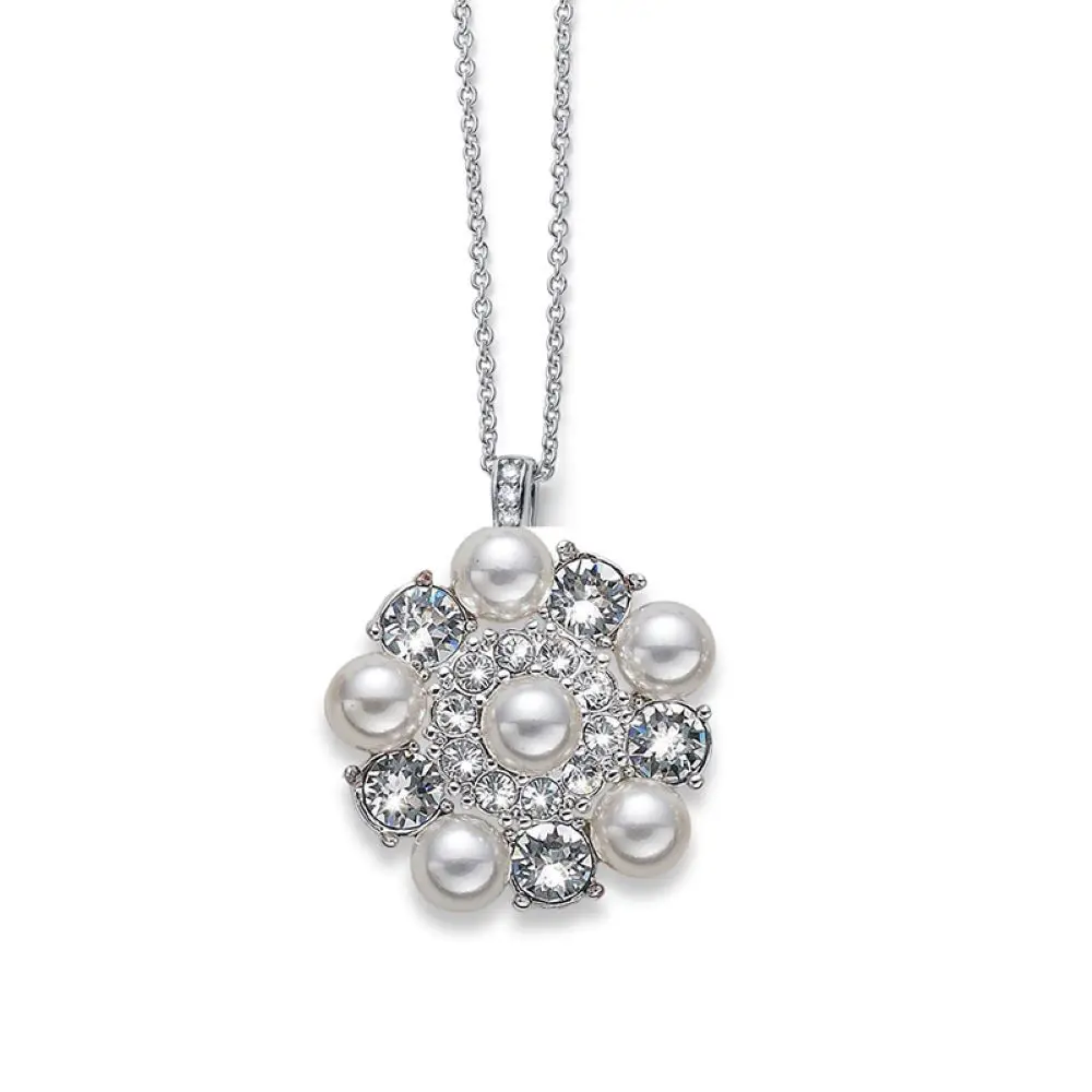 Ženski Oliver Weber lanac,sa biserom i belim Swarovski kristalom,u boji srebra.