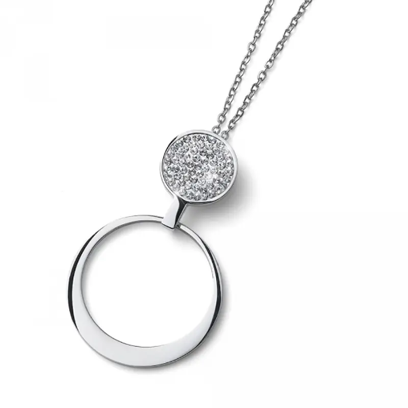 Ženska Oliver Weber ogrlica,u srebrnoj boji sa okruglim priveskom na kojem su Swarovski kristali.