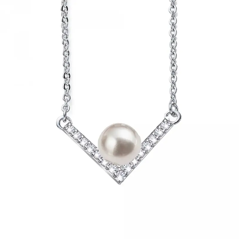 Ženski Oliver Weber point pearl crystal lančić sa belim Swarovski perla priveskom.