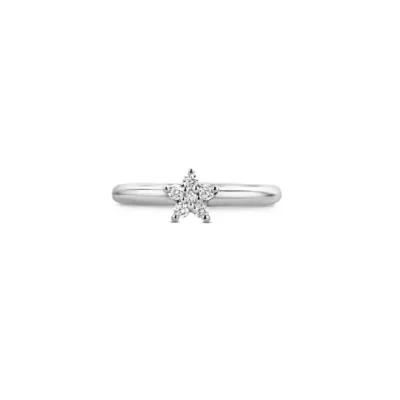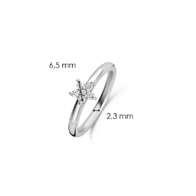 Diskretni ženski prsten brenda Ti Sento. Kod ovog modela izražen je minimalizam sa diskretnim kristalima koji su smesšteni na centaralnom delu prstena.
