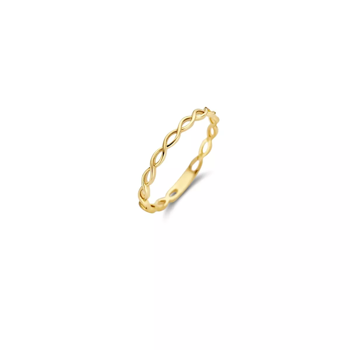 Ovaj prsten od žutog zlata od 14 karata, ima jedinstven moderan dizajn, pletenice. Takođe, ovaj prsten simbolizuje i znak beskonačnosti.