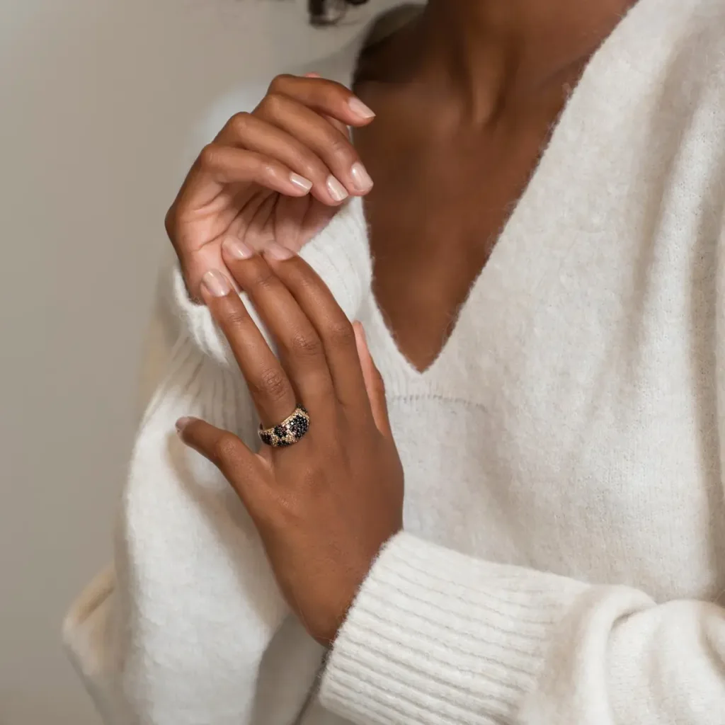 Ženski prsten brenda Ti Sento.Izrađen je od srebra u crnoj boji sa primesama boje roze zlata. Komad nakita koji će učiniti da zablistate gde god da se pojavite.