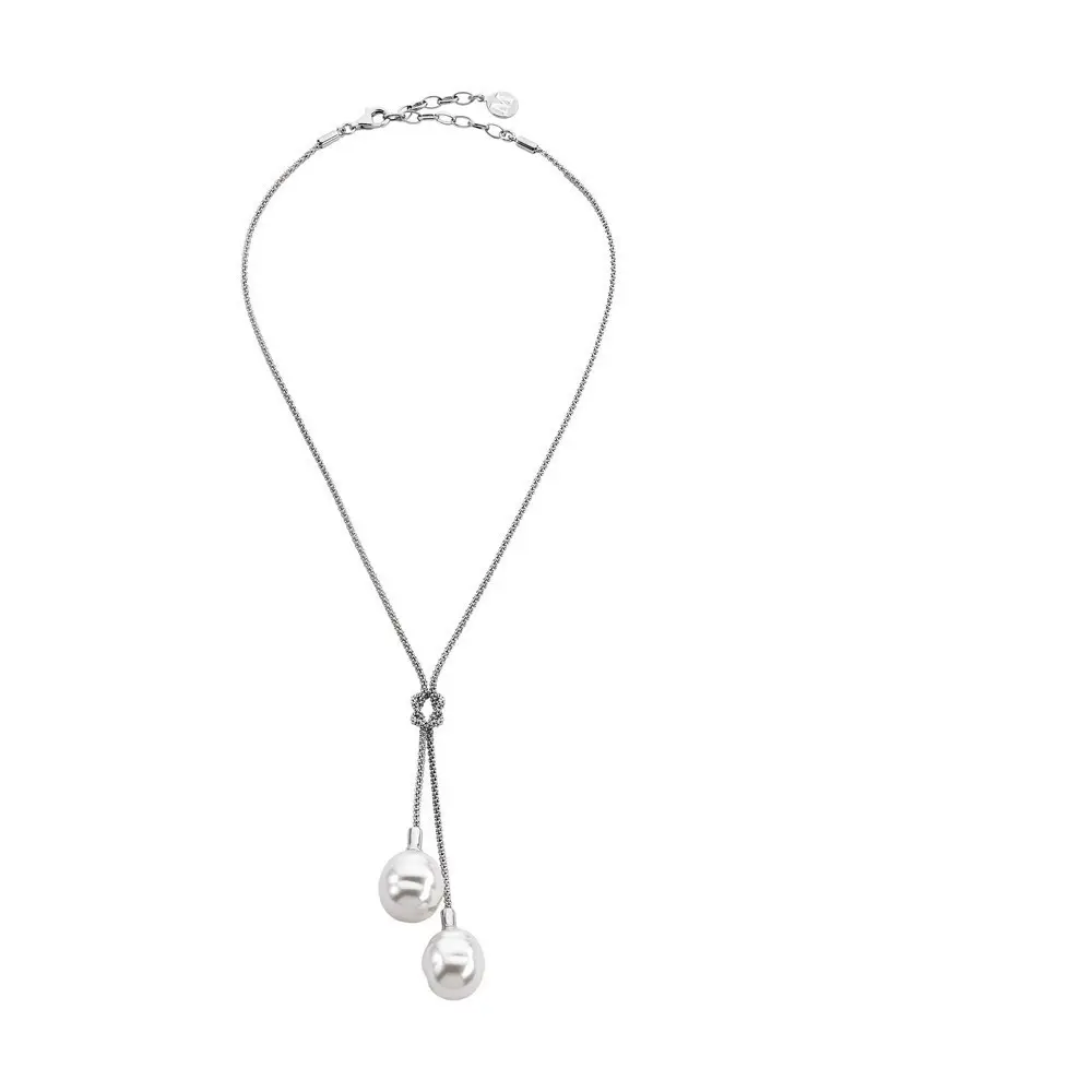 Elegantna ogrlica brenda Majorica iz kolekcije Tender. Karakteriše je srebrni lančić sa dva bela bisera koji čine ovaj model pogodnim za nošenje u svečanim prilikama.