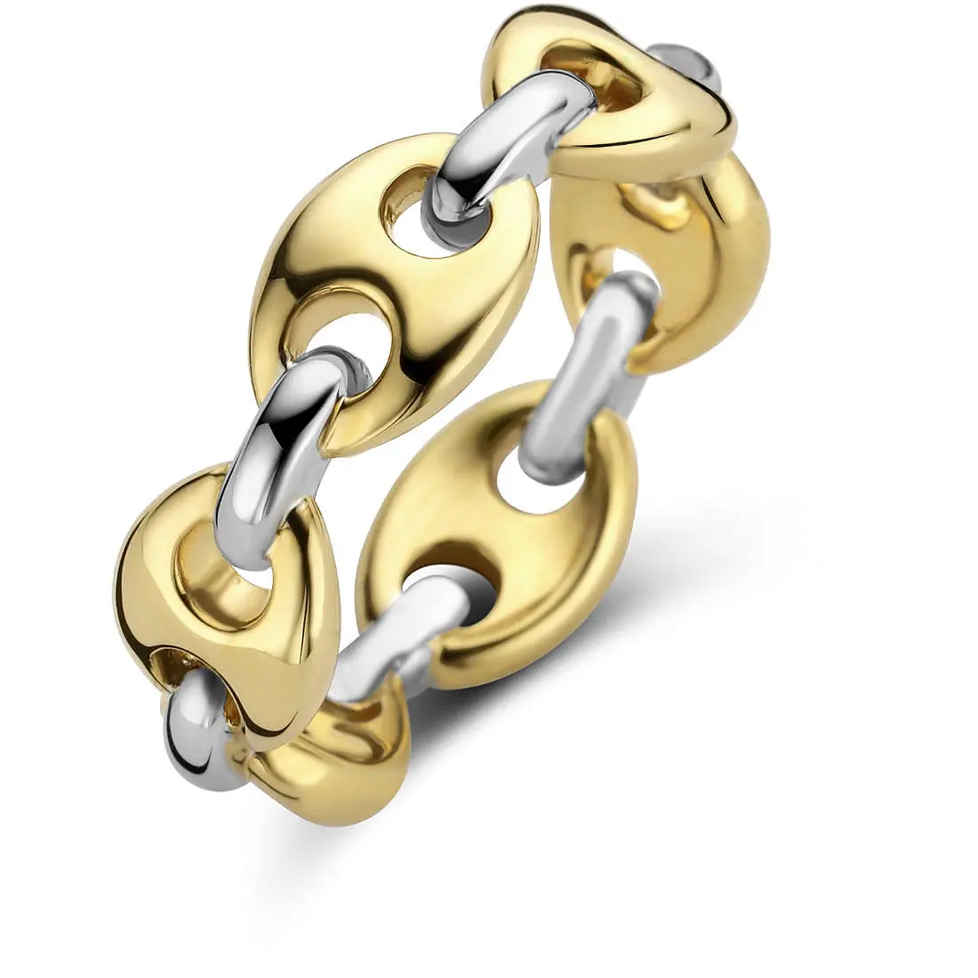 Ovaj TI SENTO – Milano pozlac´eni srebrni prsten se vijori nizom pozlac´enih oblika zrna kafe spojenih srebrnim karikama. Prsten je izrađen od 925 sterling srebra. Klasični oblik kafe u zrnu ponovo je revidiran sa dodirom razigrane oštrine. Nosite ovu privlaku za oči samostalno ili je pomešajte sa drugima.