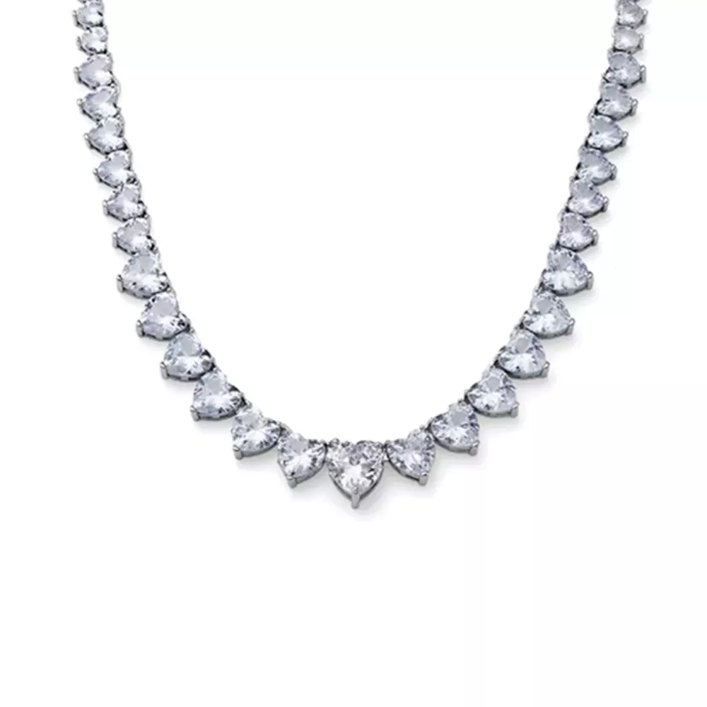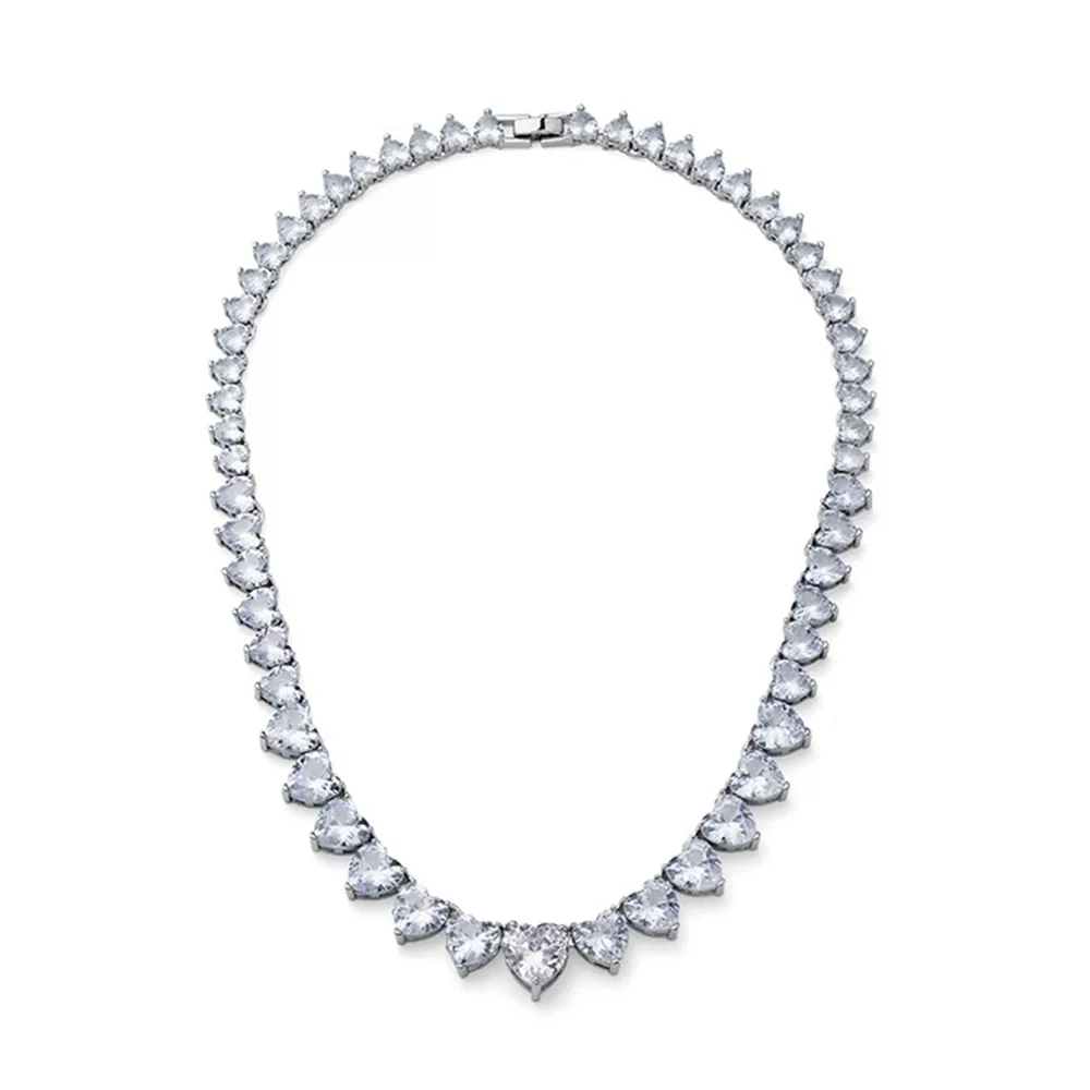 Ženska ogrlica – Sublime brenda Oliver Weber sa mnoštvom belih kristala u obliku srca različitih veličina, nanizanih po celoj dužini. Ogrlica koja oduzima dah i s čijim kombinovanjem ćete postići glamurozan stil.