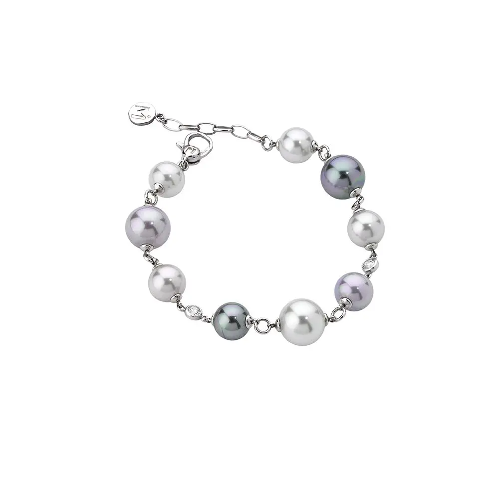 Elegantna narukvica sa čuvenim Majorica biserima sive i bele boje učiniće svaku vašu odevnu kombinaciju prefinjenom i upečatljivom. Uz Majorica nakit doživećete svu lepotu i kvalitet ručne izrade nakita.