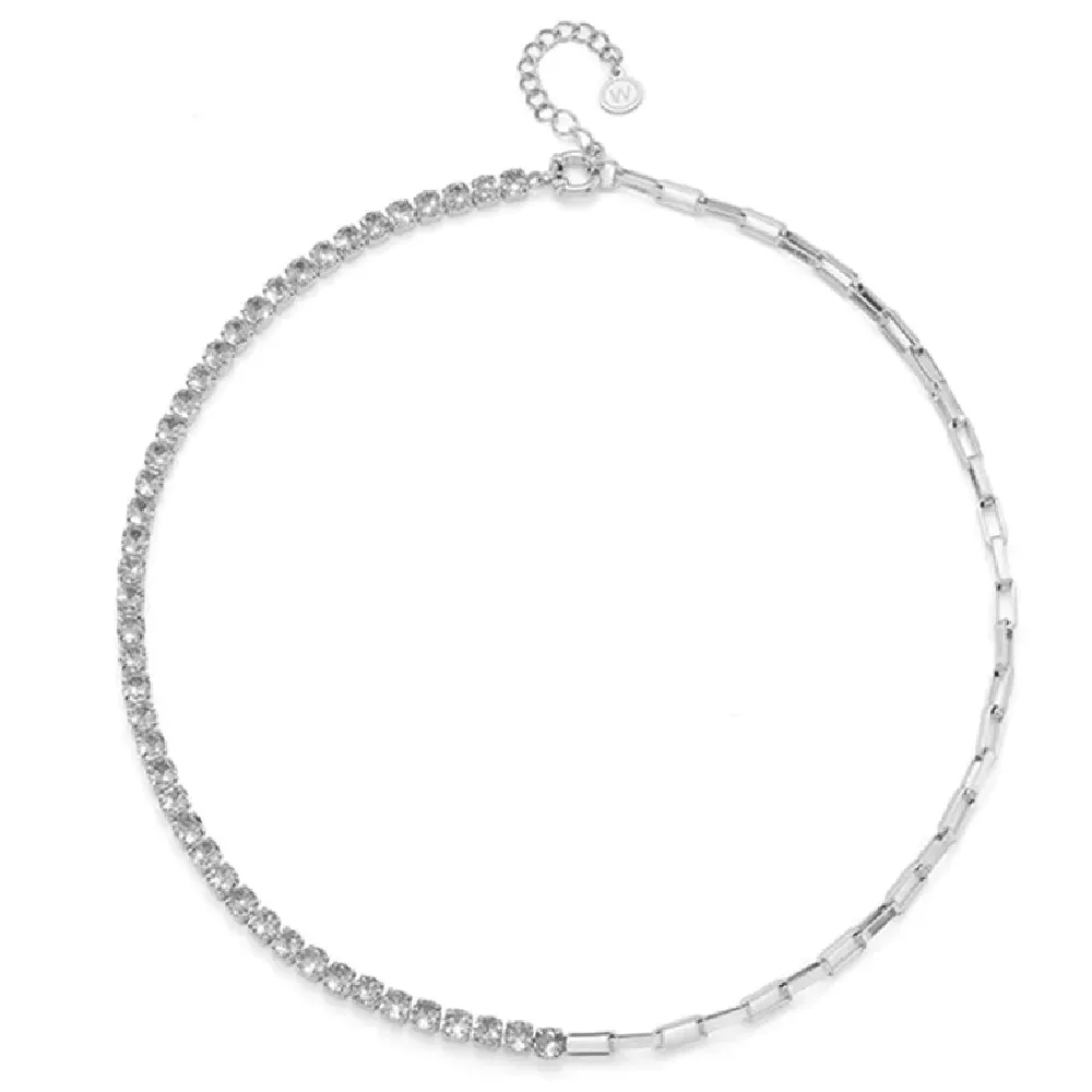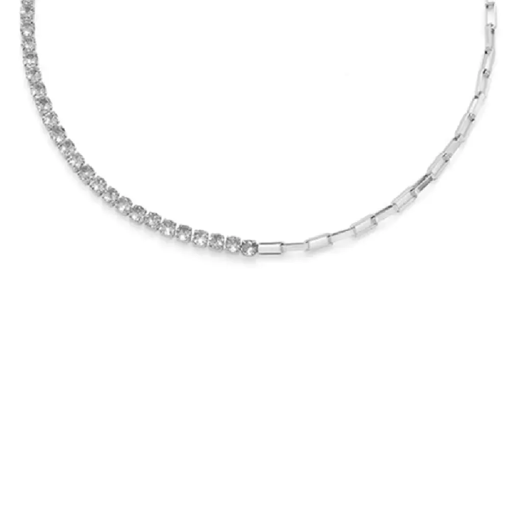 Ženska ogrlica – Viridios brenda Oliver Weber. Jedna polovina ogrlice je sačinjena od belih cirkona, a druga – karike od nerđajućeg čelika.