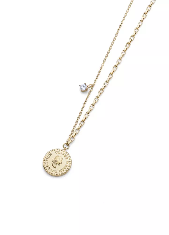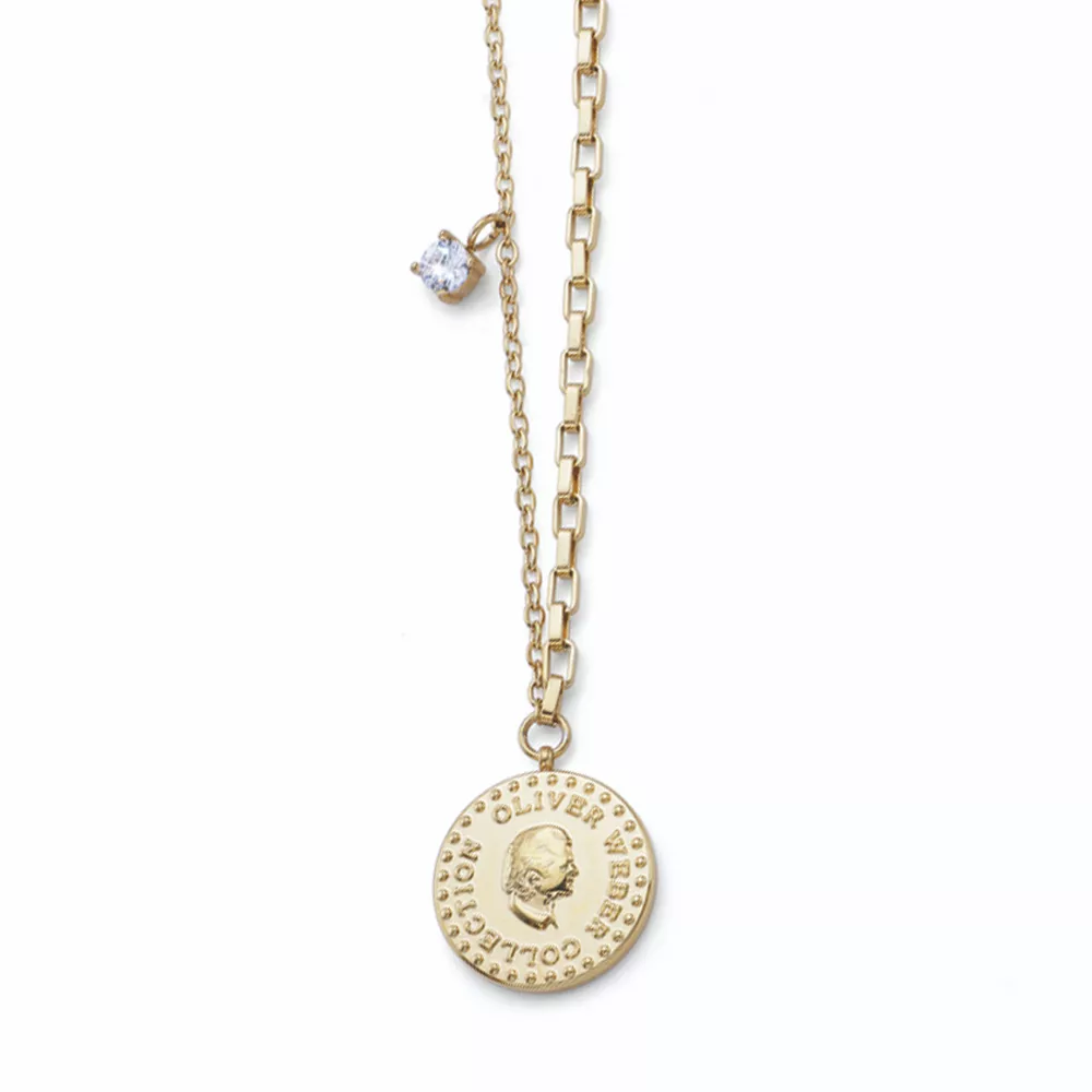 Unesite dozu elegancije i ženstvenosti u svoj stil sa Oliver Weber ženskom ogrlicom sa priveskom u obliku dukata i sitnim priveskom na lancu sa diskretnim Swarovski kristalom.