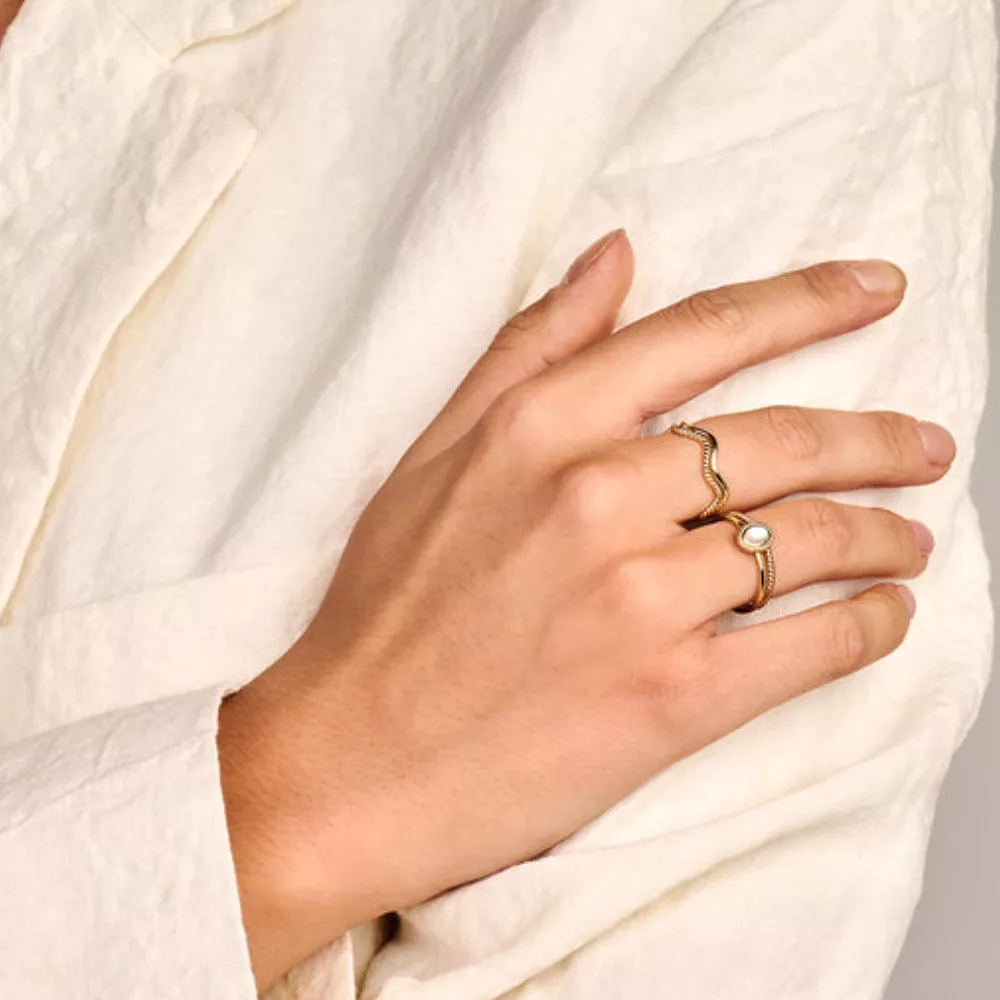 Ovaj stilski prsten od 14k žutog zlata izdvaja se svojim sofisticiranim talasastim kabel dizajnom. širina narukvice je 1,3 mm. Prsten je prelep sam po sebi, ali se takođe lepo kombinuje sa drugim prstenovima.