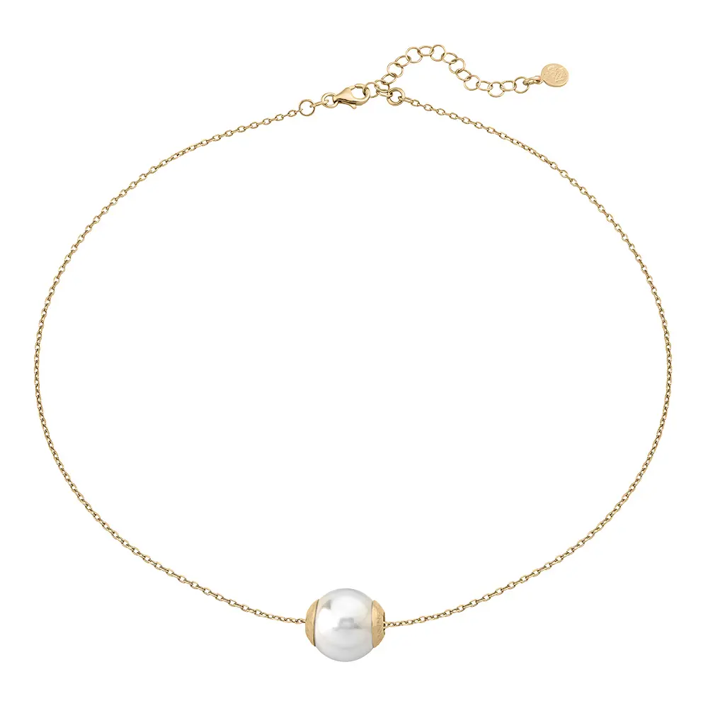Elegantna srebrna ogrlica u boji zlata sa čuvenim Majorica biserom učiniće svaku vašu odevnu kombinaciju prefinjenom i upečatljivom. Uz Majorica nakit doživećete svu lepotu i kvalitet ručne izrade nakita.