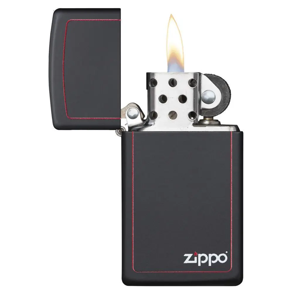 Originalan Zippo upaljač otporan na vetar sa prepoznatljivim Zippo dizajnom. Metalna konstrukcija sa zaobljenim ivicama i matiranom završnicom. Crne boje sa štampanim Zippo logom i crvenim bordurama na obe strane. Potvrda autentičnosti je Zippo logo utisnut na dnu upaljača. Svaki Zippo upaljač dolazi u originalnom pakovanju i idealan je poklon trajnog kvaliteta.