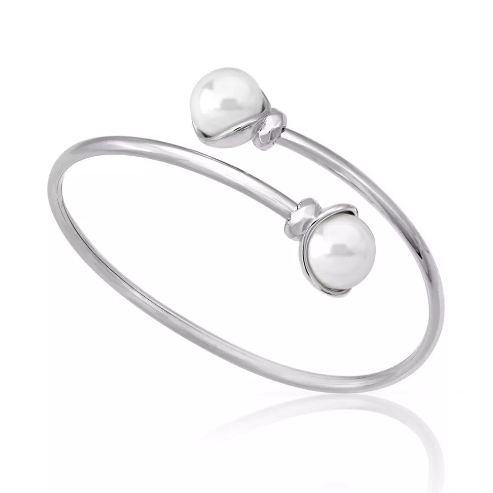 Neobičnu Majorica otvorenu narukvicu krase dva bisera na krajevima. Osvetlite svoj stil sa ovom narukvicom i doživite neverovatnu lepotu i sjaj koji samo biserni nakit može pružiti.