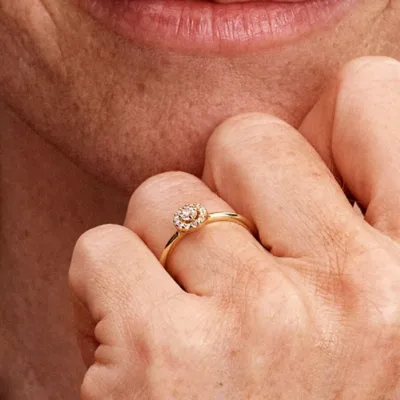 Prsten "Round Pave Halo" kombinuje bezvremensku eleganciju sa modernim šarmom. Izrađen od jedinstvenog metala sa 14k zlatnim premazom, ovaj prsten sadrži podignuti kubni cirkon, postavljen u zupčasti prsten, okružen halo-efektom pavé kamenčića. Polirani trak dodatno naglašava njegovu klasičnu lepotu. Savršen za svaku priliku, ovaj komad se lako kombinuje kako sa svakodnevnim, tako i sa formalnim outfitima, dodajući dašak sofisticiranosti i sjaja. Idealan poklon koji utelovljuje modernu eleganciju.