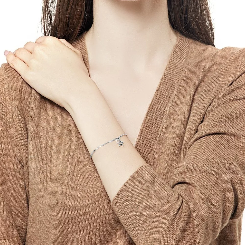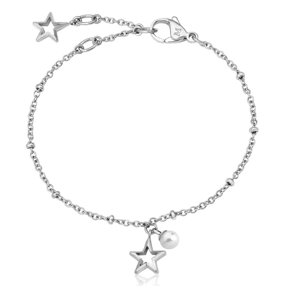 Ova prelepa narukvica od originalnog metalnog finiša sastoji se od tanke lančićne osnove sa malom zvezdom koja iz nje izranja. Rukom rađena ukrasna biserna dekoracija posebno dolazi do izražaja svojim sjajem. Rock Star biserna narukvica srebrne boje, debljine 4 mm i dužine 15+4cm. Idealna je za kombinovanje sa drugim Majorica dizajnima, dodajući sofisticiranost i elegantan šarm svakom stilu.