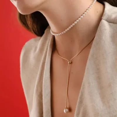 Neobična Majorica ogrlica sa dugim priveskom sa biserom doneće eleganciju i sofisticiranost svakom izgledu.