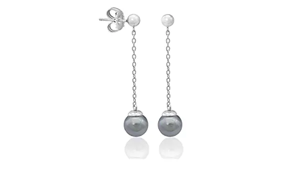 Elegantne minđuše brenda Majorica izrađene od srebra sa sivim biserom koji visi sa tankog lančića. Pogodne za svakodnevno nošenje i za elegantne prilike.
