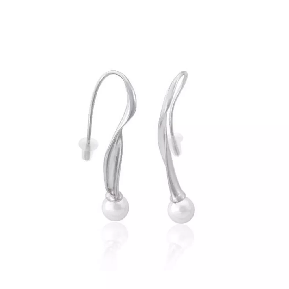 Ženske minđuše brenda Majorica iz kolekcije Elia od nerđajućeg čelika sa belim perlama.