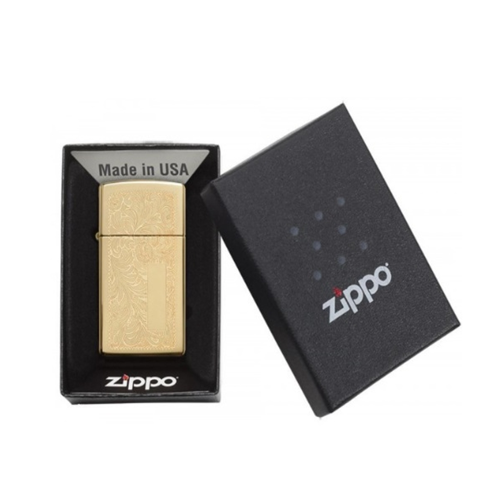 Originalan Zippo upaljač sa prepoznatljivim Zippo dizajnom .Slim model zlatne je boje i sa specijalnom gravurom . Potvrda autentičnosti je Zippo logo utisnut na dnu upaljača. Modele karakteriše karakterističan zvuk prilikom otvaranja i plamen,otporan na vetar. Svaki Zippo upaljač dolazi u originalnom pakovanju i idealan je poklon trajnog kvaliteta.