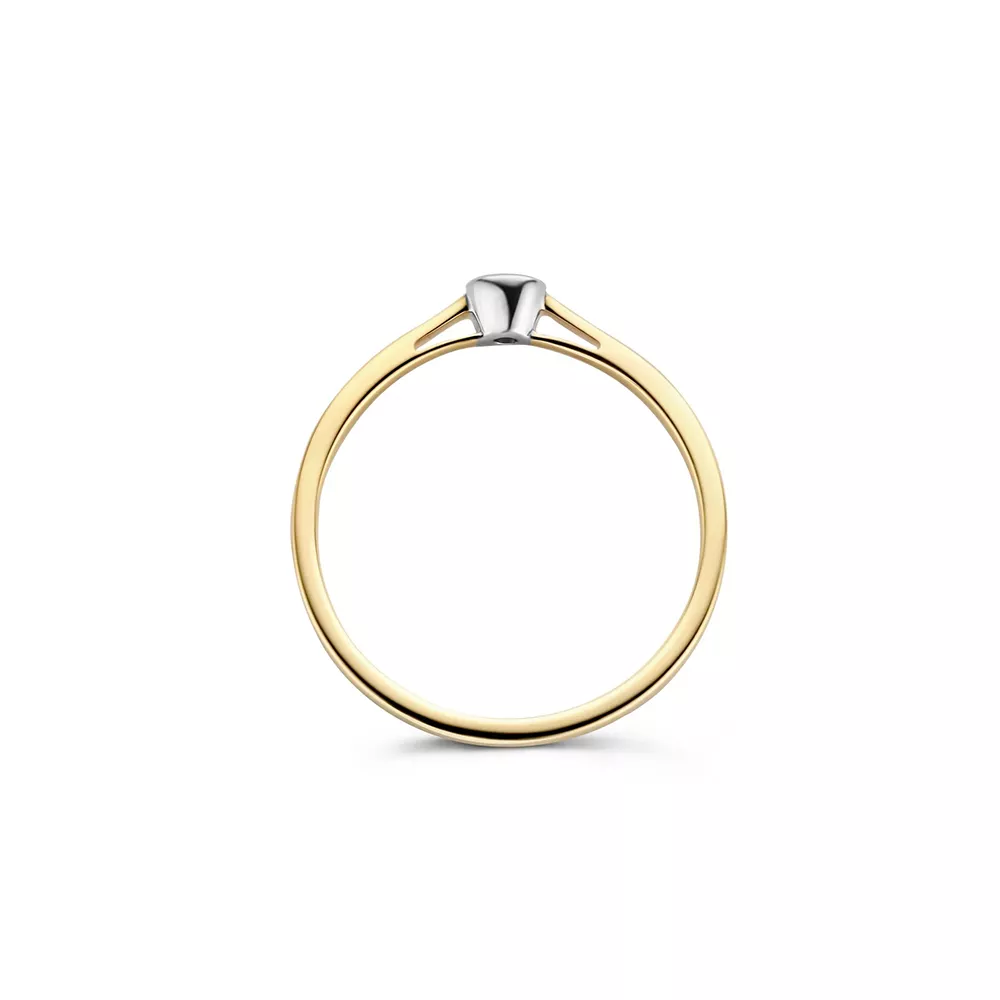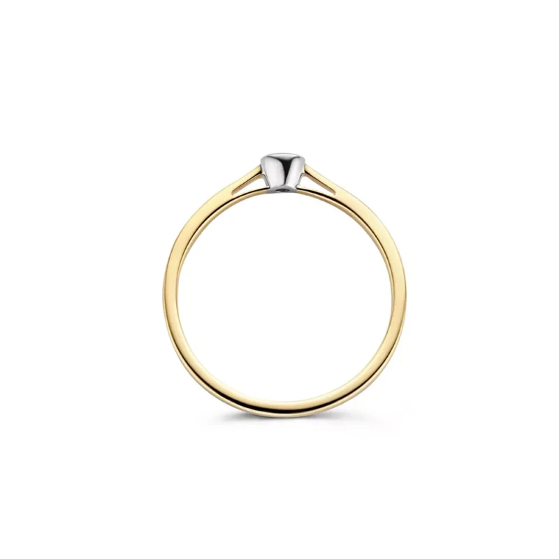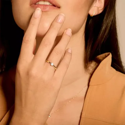 Blush ženski prsten od 14ct žutog i belog zlata sa dijamantom od 0.06 karata. Za minimalistički stajling nosite ovaj prsten samostalno ili nanižite više komada nakita za glamurozniji izgled.