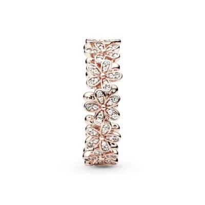 Delikatni, ručno završeni prsten od 14k roze pozlate sa ružičastom pozlatom idealan je za nizanje. Čine ga spojene bele rade ukrašene svetlucavim kamenčićima.