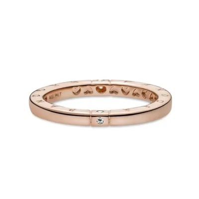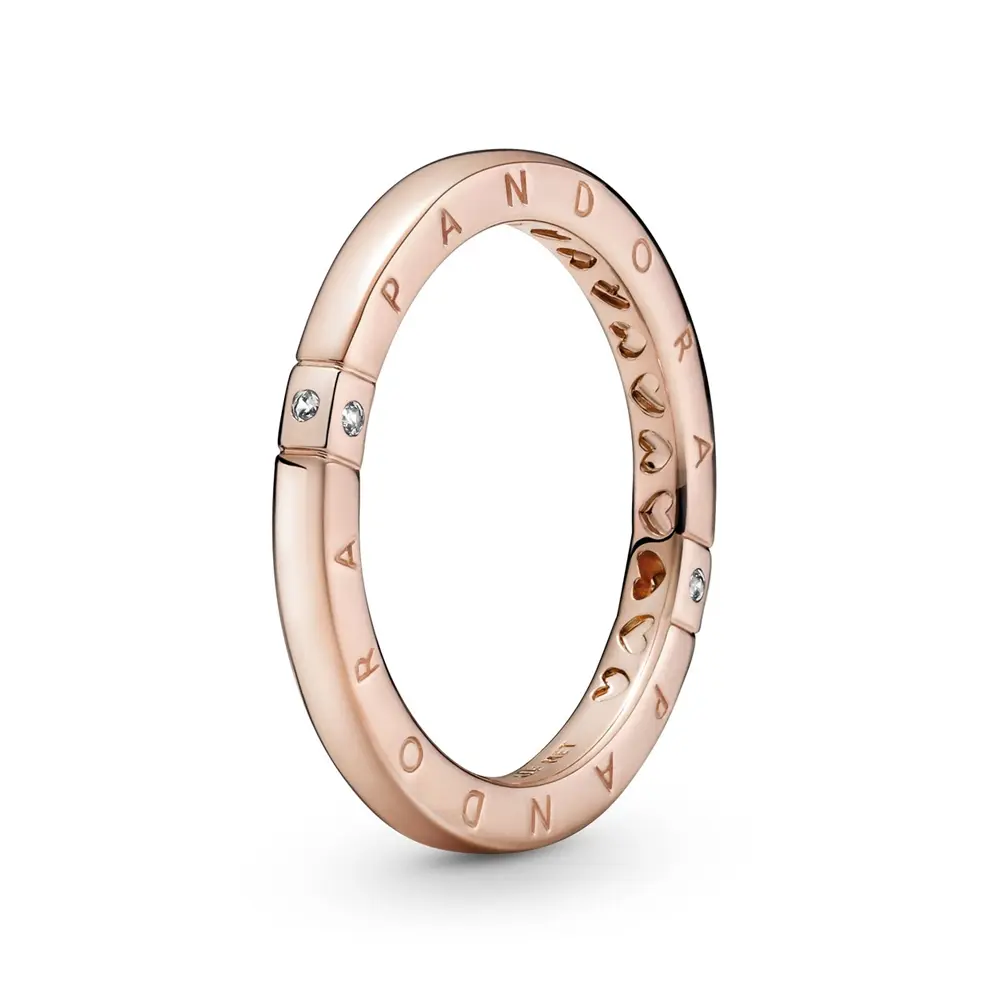Proslavite elegantnu jednostavnost uz prsten sa logotipom i srcima. Ovaj ručno završeni prsten sa pozlatom od 14 k ružičastog oblika ima kvadratni profil sa poliranom spoljnom ivicom, Pandorin logo sa dve strane i izrezana srca sa unutrašnje strane. Žlebljene linije u dva položaja stvaraju kvadratni okvir uokviren jasnim kubnim cirkonij kamenjem. Bilo da tražite savršen prsten za slaganje ili elegantan stil sa suptilnom sjajnošc´u, ovaj prsten je svestran izbor za svaku priliku.