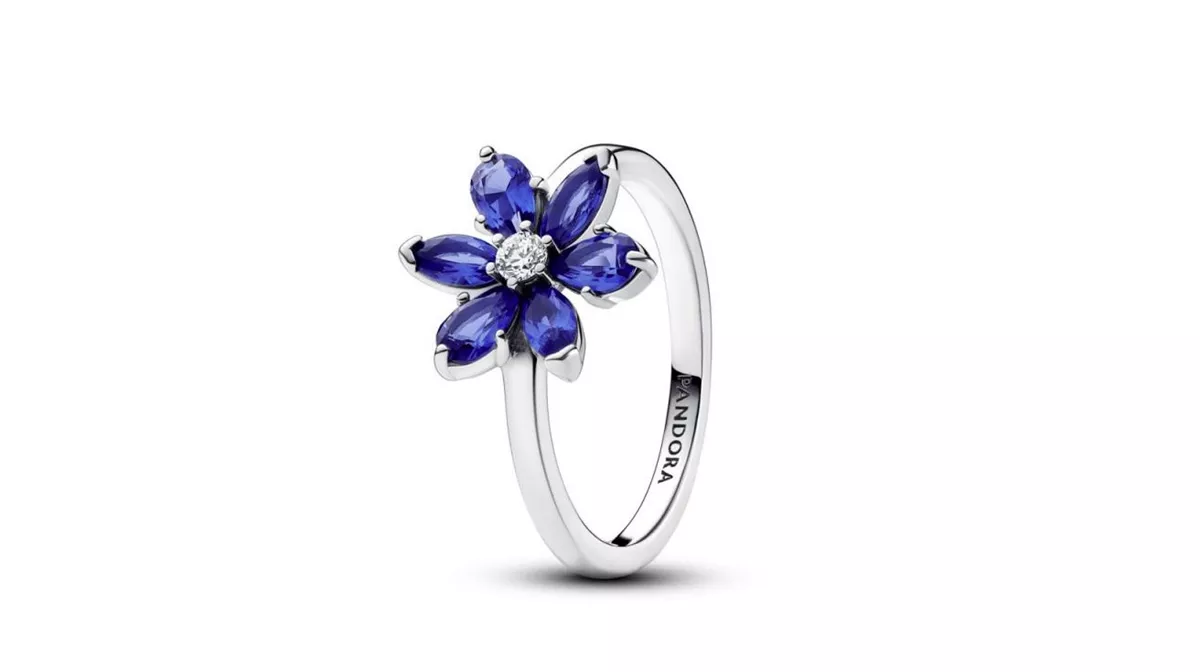 Zablistaj u boji sa svetlucavim herbarijum prstenom. Ovaj srebrni prsten sa sintetičkim kristalima u obliku cveta slavi lepotu prirode. Plavo kamenje u obliku latica postavljeno je ojo prozirnog sreišnjeg kamena i njihovi različiti oblici dočaravaju prirodnu simetriju koja se nalazi u priordi. Pokloni ga ljubitelju prirode u svom životu ili ga nosi uz druge stilove inspirisane Pandora herbarijumom za privlačan izgled.