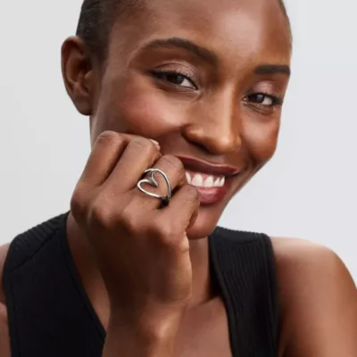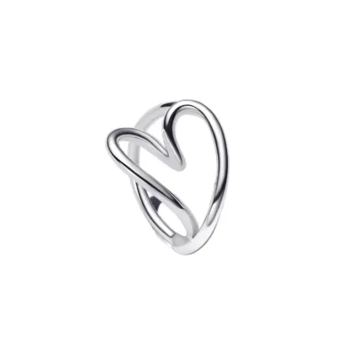 Oplemenite svoj stil prstenom Organically Shaped Heart, koji donosi harmoniju prirodnih oblika i ljubavi. Talasasti obruč od srebra 925 razdvaja se u asimetrično oblikovano srce, koje leži vodoravno na prstu u elegantnoj openwork formi. Kada se nosi, samo središnji deo srca dodiruje kožu, dok ostatak prstena ostaje blago podignut, stvarajući skulpturalni efekat. Sa lagano uvećanom veličinom, ovaj prsten pruža svedeni, ali upečatljiv izgled, savršen za kombinovanje sa minimalističkim komadima nakita.