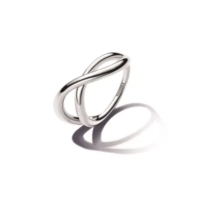 Unesi dimenziju u svoj izgled dok nosiš organski oblikovan prsten sa simbolom beskonačnosti. Ovaj prsten od čistog srebra se deli na dve trake koje se preklapaju, spojene pozadi. Obe trake imaju blagi talas i raznoliku širinu za talasasti, organski izgled. Otelotvorujuc´i lepotu koja se nalazi u organskim oblicima prirode, ovaj prsten c´e tvom izgledu dodati arhitektonski element. Upari ga sa drugim stilovima od čistog srebra za monohromatski minimalizam ili ga koristi kao osnovu za tvoj sledec´i maksimalistički niz prstenova.