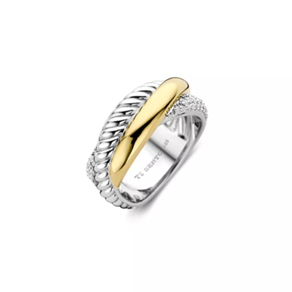 Uživajte u očaravajućem spoju tekstura i metala sa ovim TI SENTO prstenom od srebra, sa pozlatom. Ovaj hrabar i skulpturalni komad sadrži tri upletena prstena: jedan je prekriven blistavim žutim zlatom, stvarajući topao kontrast prema hladnoj, elegantnoj pojavi ostalih dva prstena. Delikatna ravnoteža poliranog srebra i akcenta u pozlati daje ovom prstenu moderan izgled sa snažnim izjavama. Idealno za one koji traže aksesoar koji spaja vanvremensku eleganciju i savremeni šarm, ovaj prsten je dovoljno svestran da se nosi samostalno ili u kombinaciji sa drugim TI SENTO komadima.