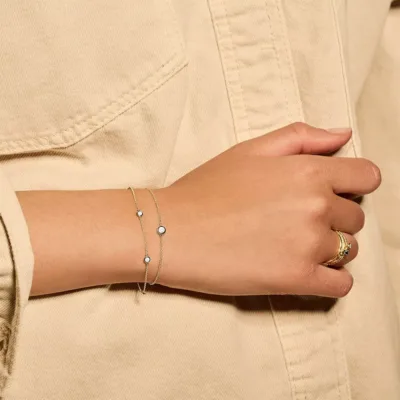 Sofisticirana narukvica od 14 karatnog žutog zlata koja nosi prelep cirkon na sredini. Maksimalna dužina narukvice je 18cm koju možete prilagoditi bilo kojoj dužini zahvaljujući elegantnom sferičnom zatvaranju.