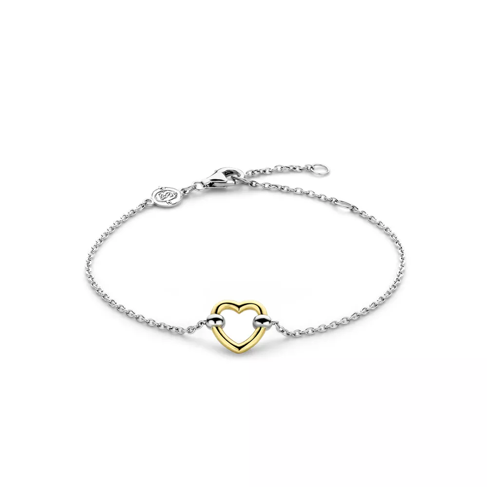Ženska narukvica brenda Ti Sento od najfinijeg srebra sa priveskom u obliku srca koji ima žutu pozlatu.