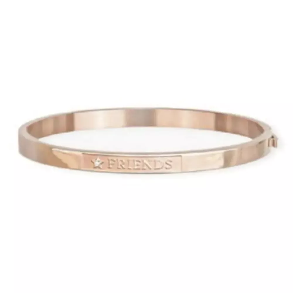 Ženska narukvica brenda 2jewels iz kolekcije Bangle. Karakteriše je čvrsta forma sa natpisom "Friends". Izrađena je od 316L nerđajućeg čelika u boji roze zlata što čini ovaj model pogodnim za svakodnevno nošenje.Veličina 5x6cm