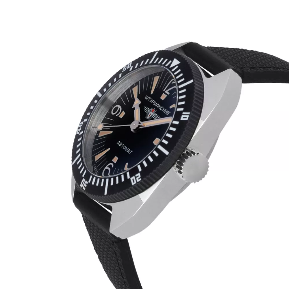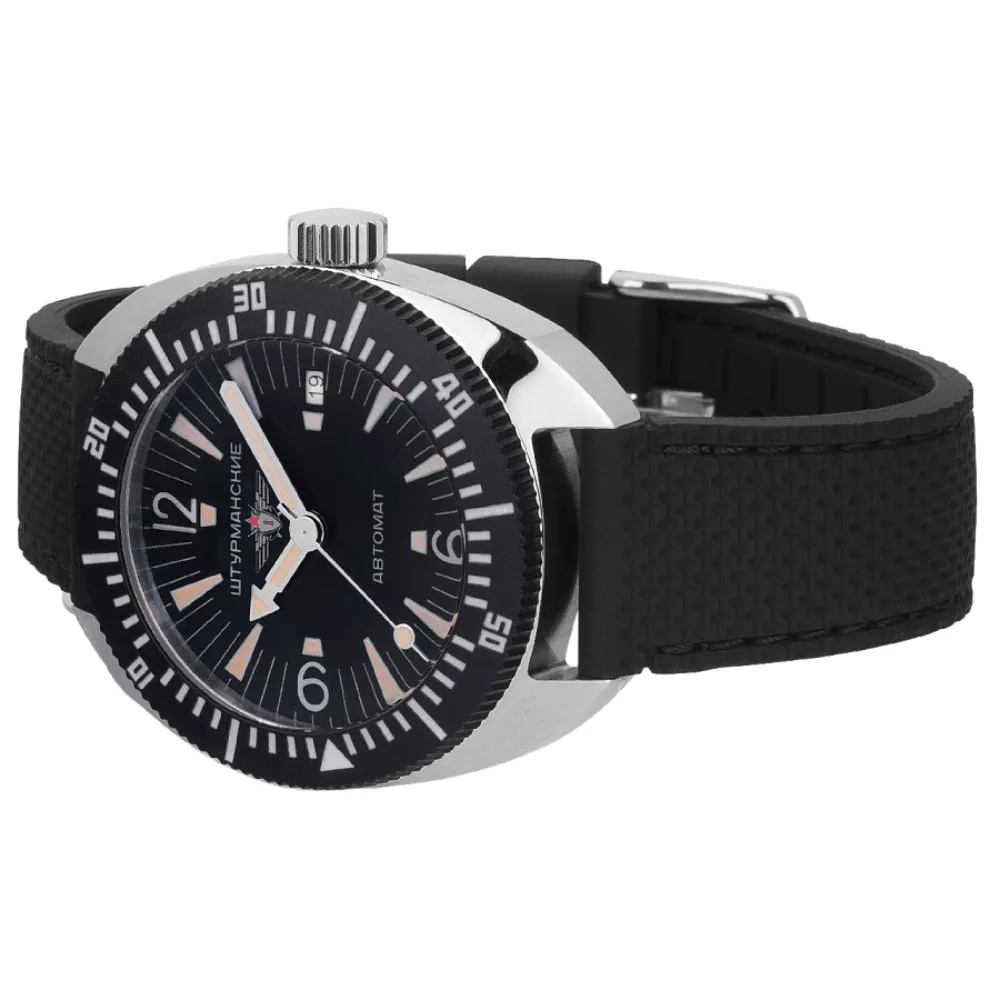 More deluje beskonačno i večno, izazov za snagu duha i pouzdanost. U takvim uslovima tačnost i pouzdanost postaju od presudne važnosti, a već decenijama satovi iz serije Amfibija pomažu nam da se orijentišemo u beskonačnosti vremena i prostora. Satovi Amfibija prvi put su proizvedeni u Prvoj Moskovskoj Fabrici Satova tokom 1970-ih godina. Njihovo masivno kućište u obliku jastuka, sa okruglim rotirajućim prstenom (bezelom) i kontrastnim luminiscentnim oznakama, predstavljalo je moderan sportski dizajn koji je i danas jednako aktuelan. Brend šturmanski, naslednik Prve Fabrike Satova, predstavlja novu kolekciju Amfibija, posvećenu legendarnoj seriji. Ovi satovi opremljeni su ruskim mehaničkim kalibrom 2416 sa automatskim navijanjem. Kućište od nerđajućeg čelika pruža vodootpornost do 20 atmosfera (200 metara), dok crni rotirajući bezel sa kontrastnim luminiscentnim oznakama naglašava ronilački karakter modela. Na zadnjoj strani kućišta, u čast istorijskog nasleđa, ugraviran je reljefni prikaz jahača na delfinu. Interesantan podatak: prema sećanjima novinara Vasilija Pekova, Jurij Gagarin je nakon svog leta pokazao sat i istakao da radi s tačnošću u sekundu. Ovi satovi nisu samo dodatak, već simbol pouzdanosti, preciznosti i istorijske tradicije.