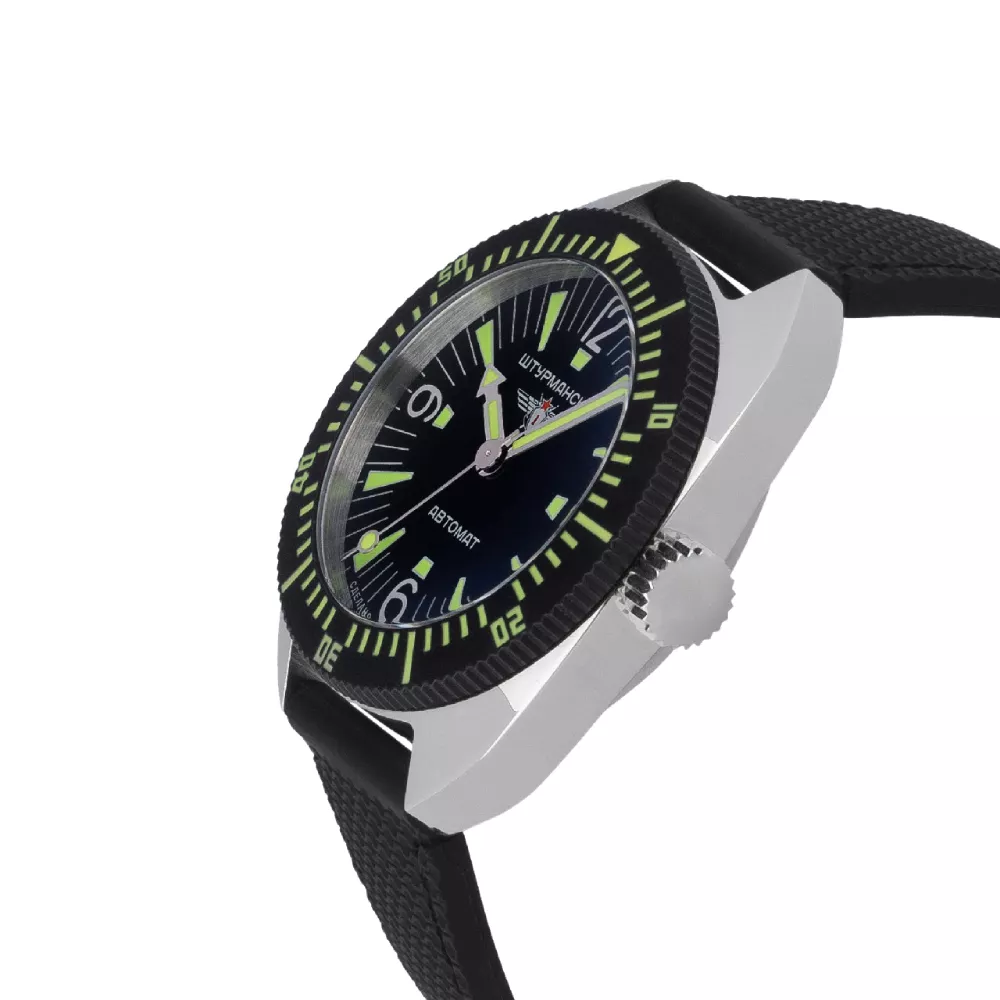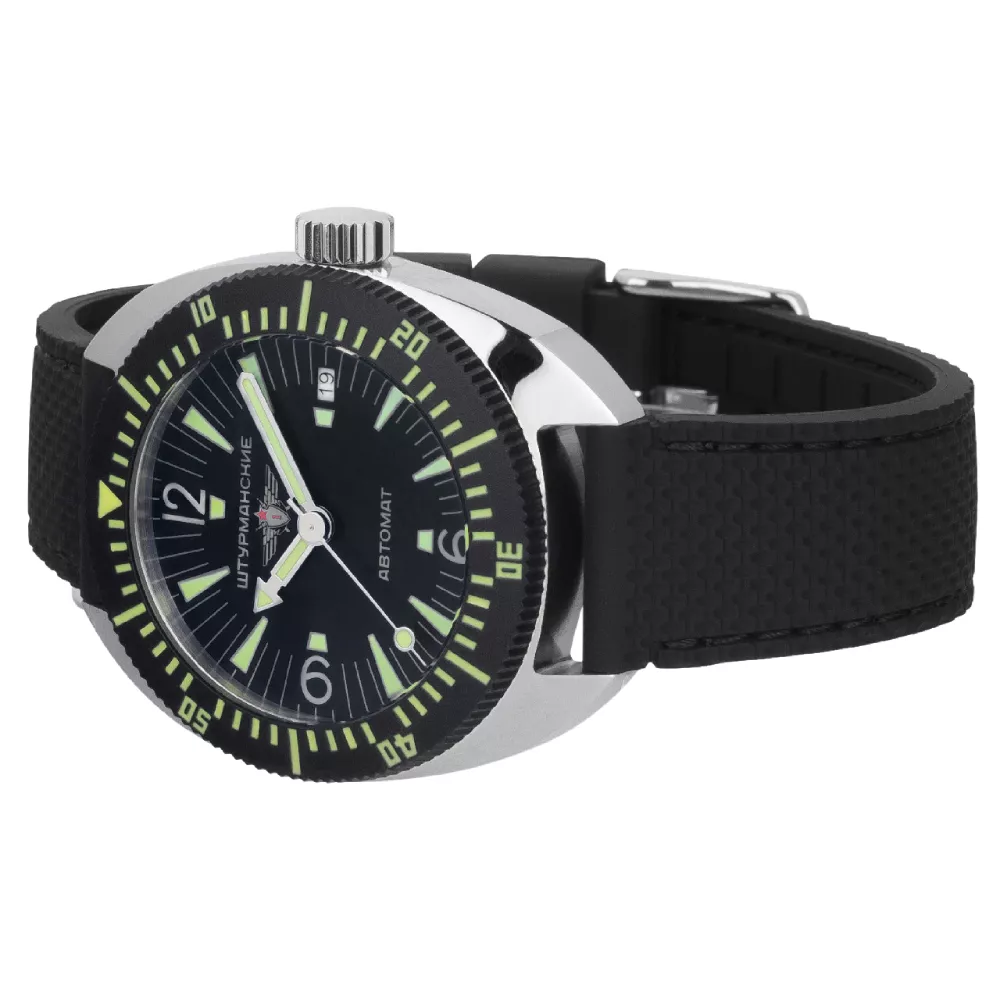 More deluje beskonačno i večno, izazov za snagu duha i pouzdanost. U takvim uslovima tačnost i pouzdanost postaju od presudne važnosti, a već decenijama satovi iz serije Amfibija pomažu nam da se orijentišemo u beskonačnosti vremena i prostora. Satovi Amfibija prvi put su proizvedeni u Prvoj Moskovskoj Fabrici Satova tokom 1970-ih godina. Njihovo masivno kućište u obliku jastuka, sa okruglim rotirajućim prstenom (bezelom) i kontrastnim luminiscentnim oznakama, predstavljalo je moderan sportski dizajn koji je i danas jednako aktuelan. Brend šturmanski, naslednik Prve Fabrike Satova, predstavlja novu kolekciju Amfibija, posvećenu legendarnoj seriji. Ovi satovi opremljeni su ruskim mehaničkim kalibrom 2416 sa automatskim navijanjem. Kućište od nerđajućeg čelika pruža vodootpornost do 20 atmosfera (200 metara), dok crni rotirajući bezel sa kontrastnim luminiscentnim oznakama naglašava ronilački karakter modela. Na zadnjoj strani kućišta, u čast istorijskog nasleđa, ugraviran je reljefni prikaz jahača na delfinu. Interesantan podatak: prema sećanjima novinara Vasilija Pekova, Jurij Gagarin je nakon svog leta pokazao sat i istakao da radi s tačnošću u sekundu. Ovi satovi nisu samo dodatak, već simbol pouzdanosti, preciznosti i istorijske tradicije.