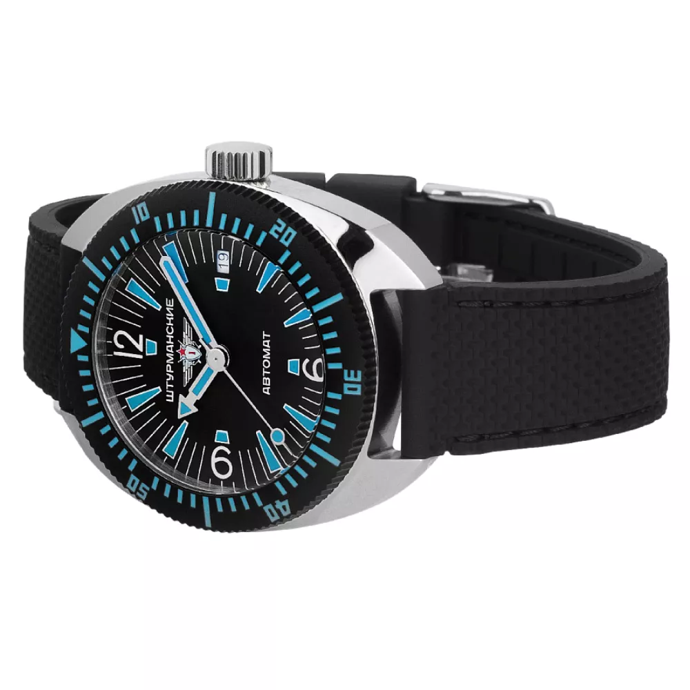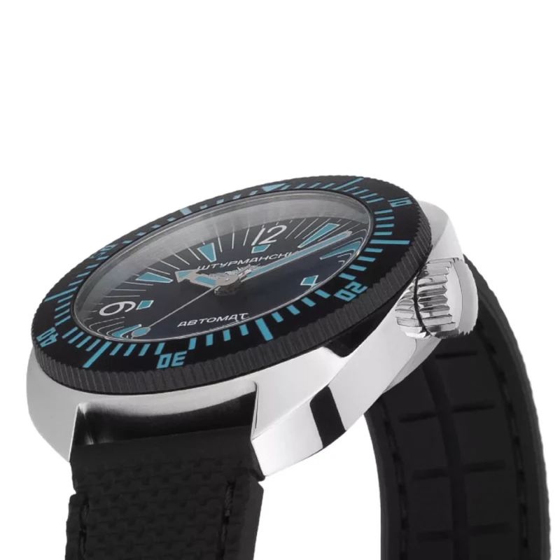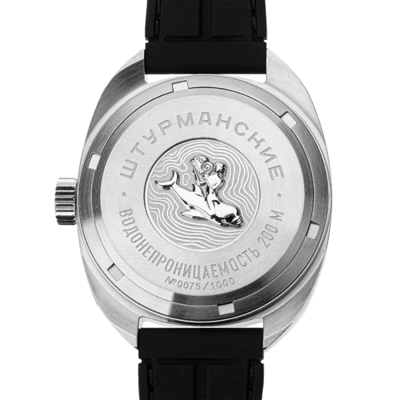 More deluje beskonačno i večno, izazov za snagu duha i pouzdanost. U takvim uslovima tačnost i pouzdanost postaju od presudne važnosti, a već decenijama satovi iz serije Amfibija pomažu nam da se orijentišemo u beskonačnosti vremena i prostora. Satovi Amfibija prvi put su proizvedeni u Prvoj Moskovskoj Fabrici Satova tokom 1970-ih godina. Njihovo masivno kućište u obliku jastuka, sa okruglim rotirajućim prstenom (bezelom) i kontrastnim luminiscentnim oznakama, predstavljalo je moderan sportski dizajn koji je i danas jednako aktuelan. Brend šturmanski, naslednik Prve Fabrike Satova, predstavlja novu kolekciju Amfibija, posvećenu legendarnoj seriji. Ovi satovi opremljeni su ruskim mehaničkim kalibrom 2416 sa automatskim navijanjem. Kućište od nerđajućeg čelika pruža vodootpornost do 20 atmosfera (200 metara), dok crni rotirajući bezel sa kontrastnim luminiscentnim oznakama naglašava ronilački karakter modela. Na zadnjoj strani kućišta, u čast istorijskog nasleđa, ugraviran je reljefni prikaz jahača na delfinu. Interesantan podatak: prema sećanjima novinara Vasilija Pekova, Jurij Gagarin je nakon svog leta pokazao sat i istakao da radi s tačnošću u sekundu. Ovi satovi nisu samo dodatak, već simbol pouzdanosti, preciznosti i istorijske tradicije.