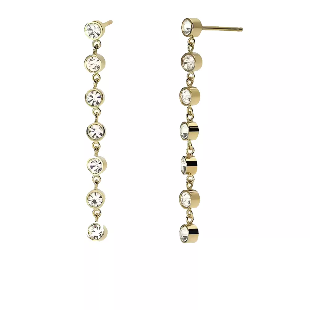 2Jewels ženske čelične minđuše u boji zlata sa belim kristalima prečnika 3 mm. Ukupna dužina naušnice je 4,5 cm