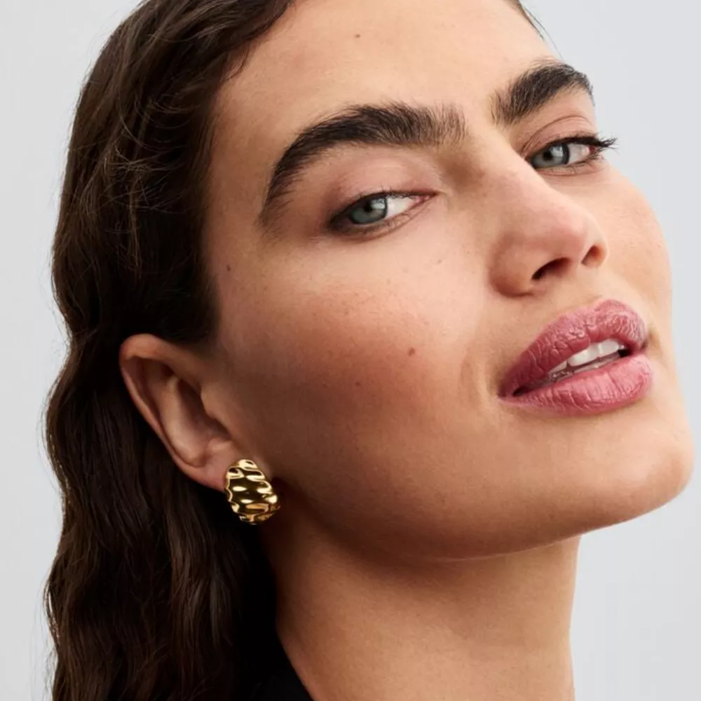 Istakni svoj stil uz široke Pandora Rippled alke sa talasastim dizajnom. Izrađene od metala sa premazom od 14k zlata i dodatkom silikona za udobno nošenje, ove upečatljive minđuše savršen su izbor za autfite koji ostavljaju utisak.