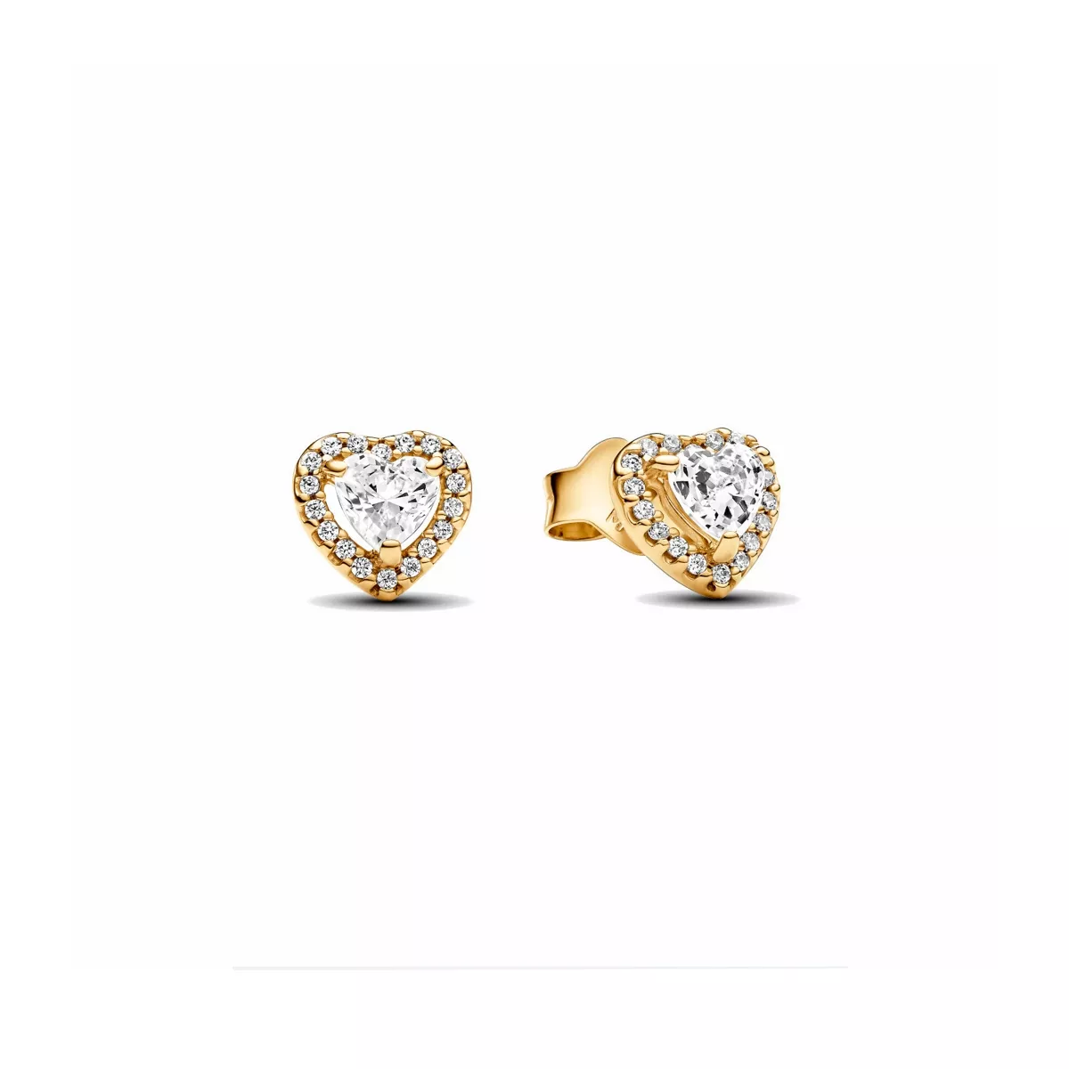 Nosi bezvremenski klasik sa ovim svetlucavim izdignutim naušnicama u obliku srca. Ručno obrađeni, ovi 14k pozlac´eni klinovi inspirisani su izgledom klasične Pandora Timeless kolekcije. Svaka minđuša ima podignuti prozirni kamen u obliku srca okružen oreolom od prozirnih kupastih cirkona, stvarajuc´i kontrast sa toplim tonovima 14k pozlate. Upotpuni izgled stilizujući ove minđuše odgovarajuc´om svetlucavom srce ogrlicom.
