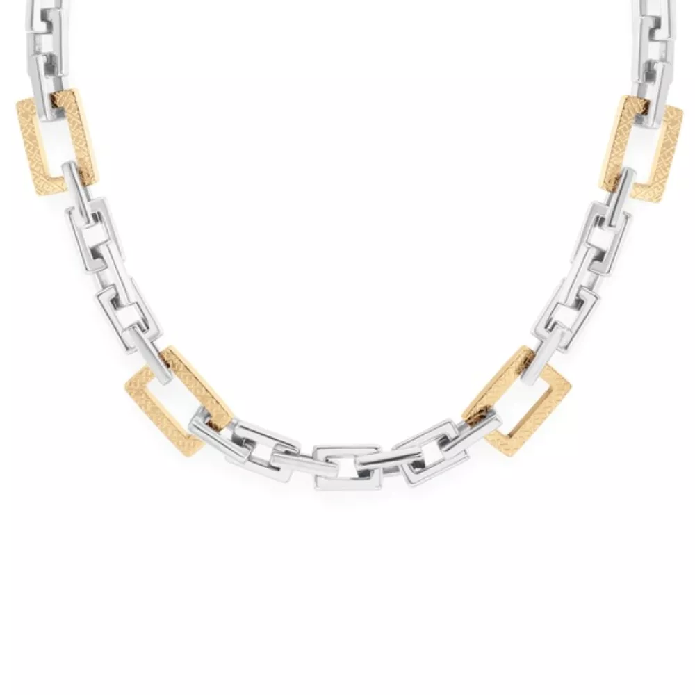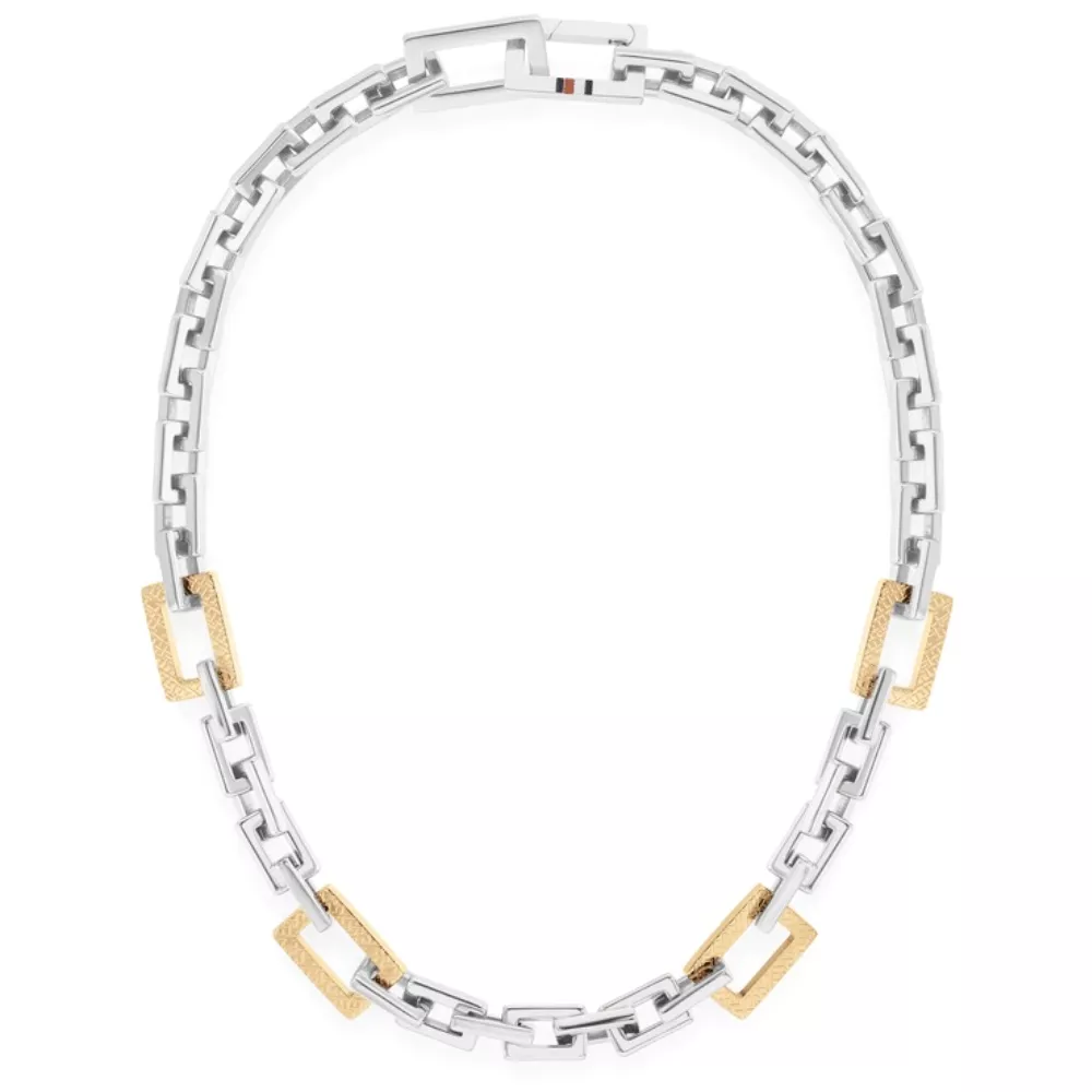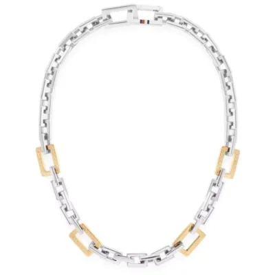 Tommy Hilfiger ženska srebrna ogrlica od nerđajućeg čelika sa zlatnim detaljima.